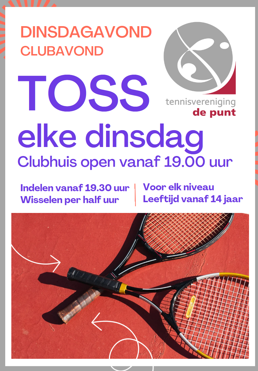 Tennissen op dinsdagavond tijdens de toss-/clubavond! Aanmelden is niet nodig
