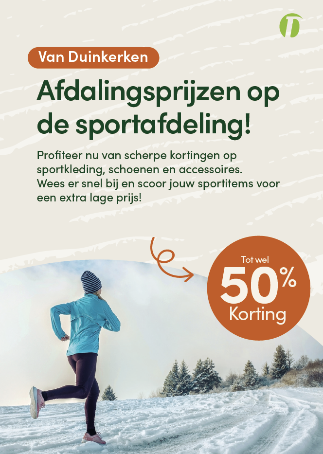 Van Duinkerken sport sale. We geven er een klein winters tintje aan met onze afdalingsprijzen met kortingen tot wel 50%.